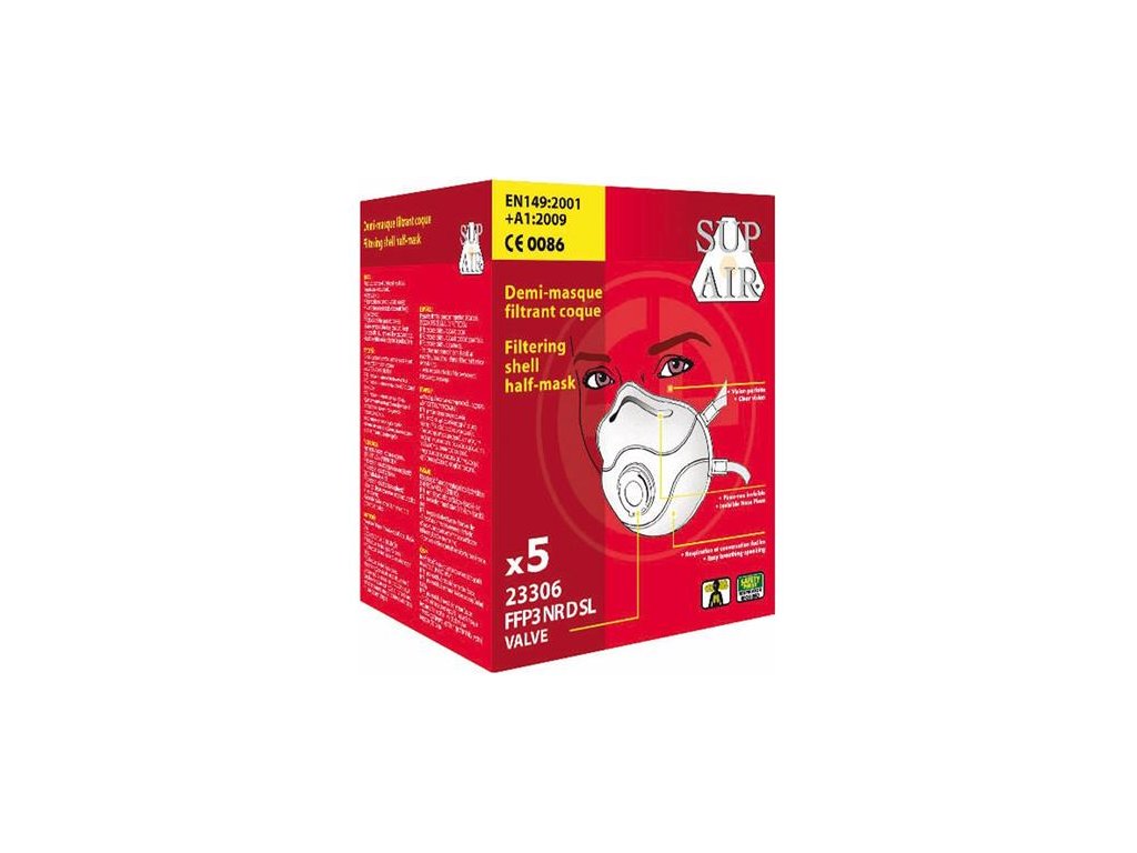 - proti pevným a kvapalným časticiam klasifikovaným ako jedy (napr. chróm, mangán, nikel, kadmium, platina, strychnín, enzýmy, vírusy, liečivá, spracovanie batérií a akumulátorov) - Označenie D osvedčuje, že filter tuhých častíc prešiel výsledkom testu dolomitov, čo zaručuje dlhodobú použiteľnosť bez upchávania pri zachovaní nízkeho odporu pri dýchaní - kónický tvar, hliníková spona na nos, špongia pre pohodlné nosenie; vnútorný krúžok z mäkkej polyetylénovej peny pre dokonalé prispôsobenie; nie je alergénny - vonkajší pp-SMS, vnútorná polyesterová vrstva, elektrostatický polypropylénový spoločný filter, dýchací ventil - aplikácia s nastaviteľnými, elastickými popruhmi - nominálny ochranný faktor: 50 EH - hmotnosť: 18 g - Norma EÚ: EN149: 2001 + A1: 2009 Značka: . Výrobca: Coverguard Adresa: PAE de la dombes, 120 rue Michel Girer, 01390 Mionnay, France Web: www.coverguard-safety.com Email: contact@coverguard-safety.comDodatočné parametre