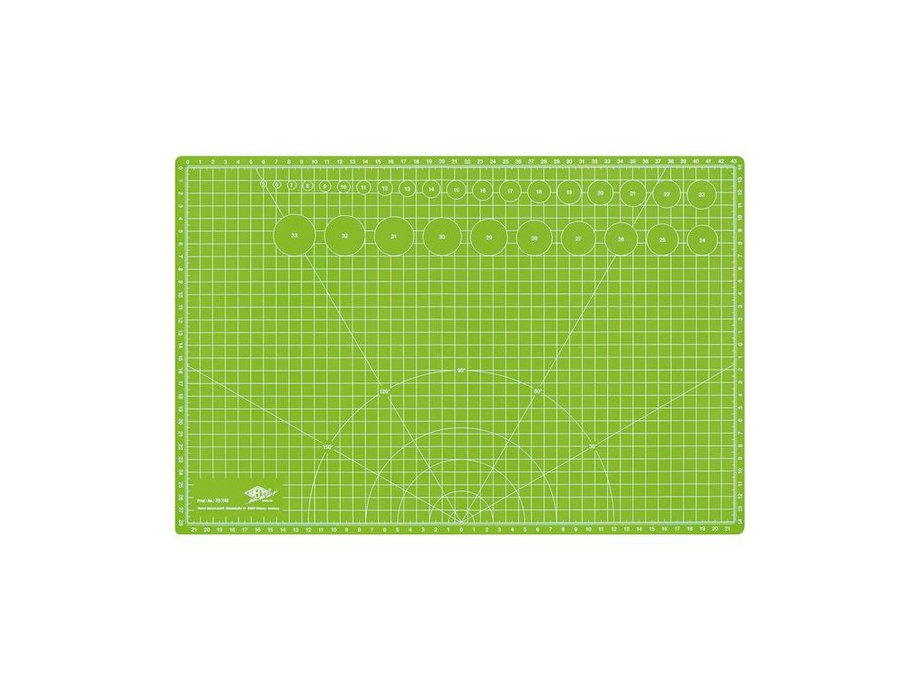 - robustná rezacia podložka je potlačená na oboch stranách mriežkou s rôznymi uhlami a kruhmi - trojvrstvová štruktúra so špeciálnym vnútorným jadrom a samouzatváracím povrchom umožňuje presné rezanie bezo stôp a zachováva ostrosť čepele - hrúbka: 3 mm - rozmery: 45 x 30 cm (A3) - rozmery mriežky: 43 x 28 cmDodatočné parametre