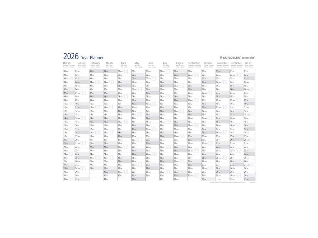 Ročný plánovač, stierateľný, v anglickom jazyku, 84x60 cm, STAEDTLER "Lumocolor® 641 YP", 2026