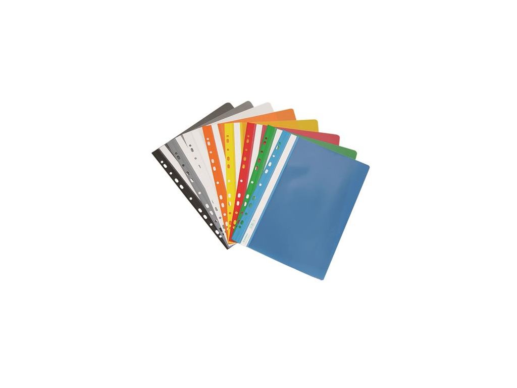 vhodné na uchovávanie dokumentov formátu A4, na založenie 200 listov, drsná, priehľadná predná strana: 150 µ, zadná strana 160 µ, obojstranné, popisovateľné bočné pásky, počet dier: 11Dodatočné parametre