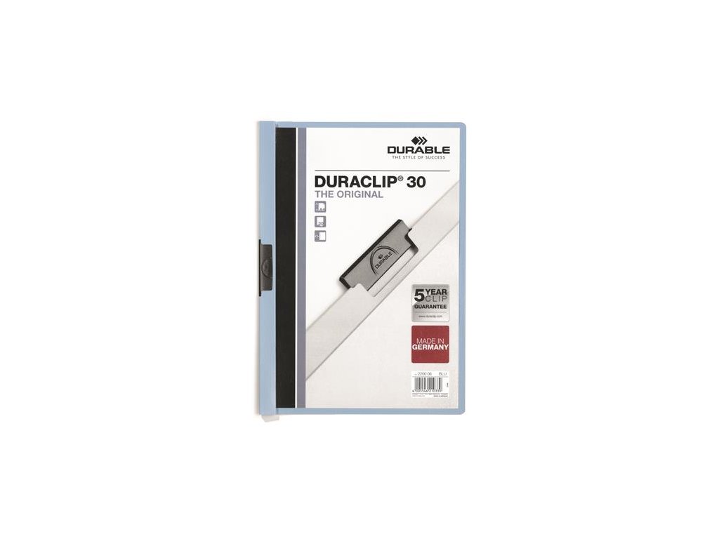 - obal vyvinutý spoločnosťou DURABLE pre viazanie nedierovaných listov - ideálny na prezentácie, ponuky, správy, poznámky na konferencie, semináre a pod. - materiál z PVC s unikátnym, pružným oceľovým klipom, ktorý sa prispôsobí vloženému počtu listov a priehľadnou prednou stranou - kapacita: 30 ks A4 listov - s priehľadnou prednou stranou a farebnou zadnou stranou - systém DURACLIP®: vytiahnite klip, vložte dokumenty a klip zatlačte naspäť - jedinečná, pružná oceľ získa späť svoj pôvodný tvar znova a znova - na klip ponúkame jedinečnú záruku 5 rokovDodatočné parametre