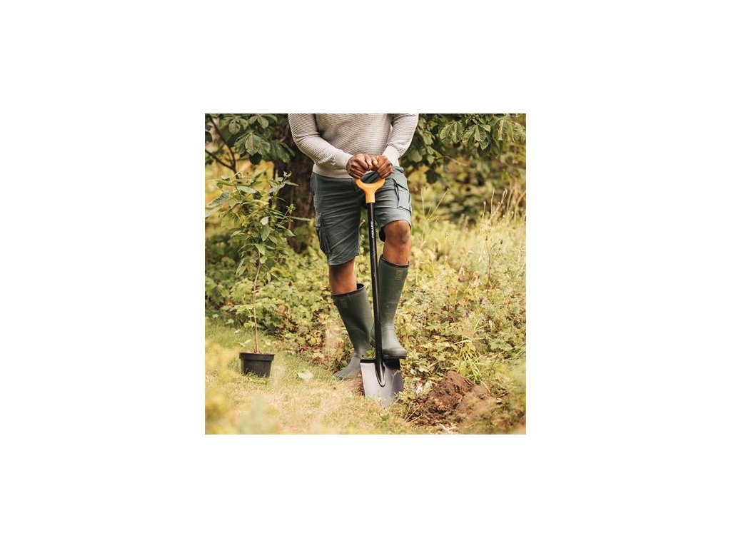 Náradie Fiskars Solid™ je efektívne, ľahko sa používa a ponúka cenovo dostupnú kvalitu pre prácu. Špicatý rýľ Solid™ má špicatú, ostrú hranu na kopanie v tvrdej, kamenistej pôde alebo na presekávanie drnov alebo koreňov. Jeho oceľová hlava je privarená k pevnej kovovej násade, čo zvyšuje jeho odolnosť. Násada v tvare písmena D je vhodná pre všetky veľkosti rúk, v rukaviciach aj bez nich.