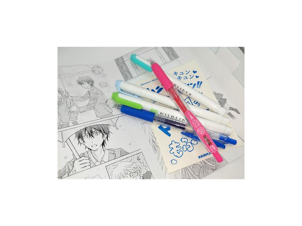 Tajomný svet manga očarí každého!- obsah sady: 1 omaľovávanka, 1 hárok nálepiek, 3 ks Mildliner Highlighter (sivá, medená, baby pink), 2 ks Sarasa Clip gélové pero (hnedosivá, čierna) Mildliner Highlighter