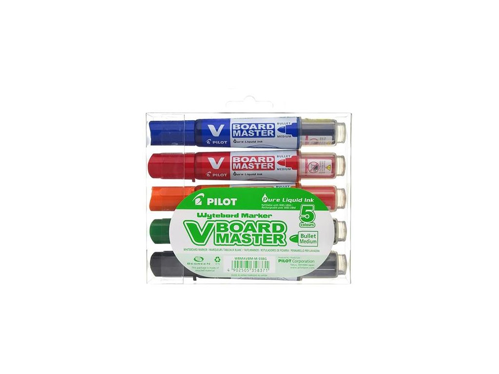 Sada popisovačov na tabule, 2,3 mm, kužeľový, PILOT "V-Board Master", 5 rôznych farieb