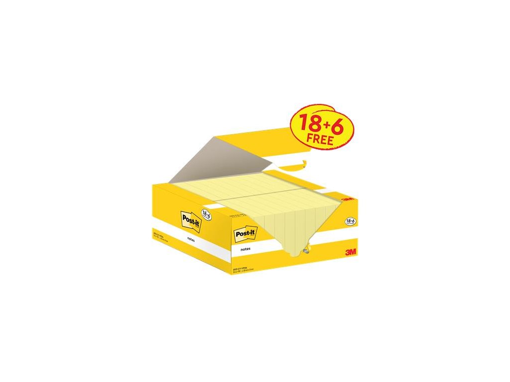 Samolepiaci bloček, 38x51 mm, 18+6x100 listov, 3M POSTIT, žltá