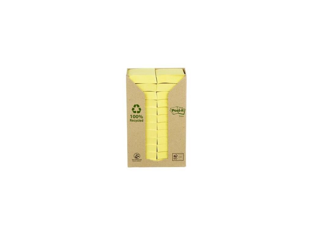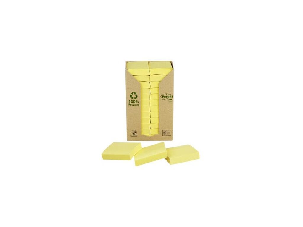 Samolepiaci bloček, 38x51 mm, 24x100 listov, ekologický, 3M POSTIT, žltý