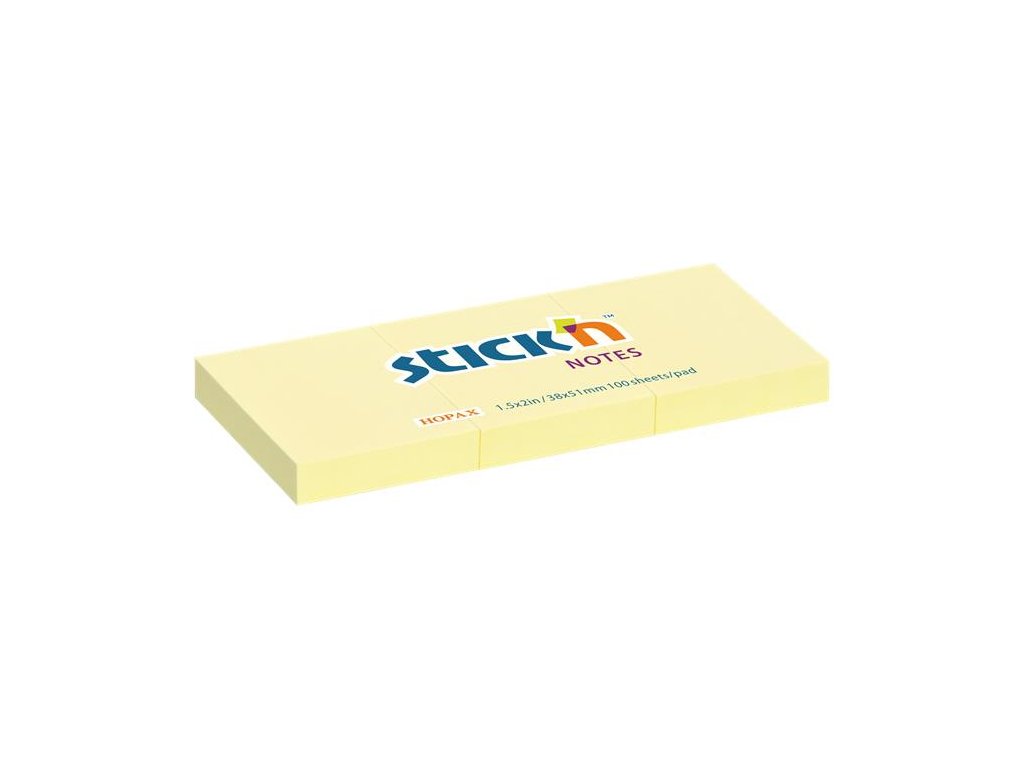 Samolepiaci bloček, 38x51 mm, 3x100 listov, STICK N, pastelová žltá