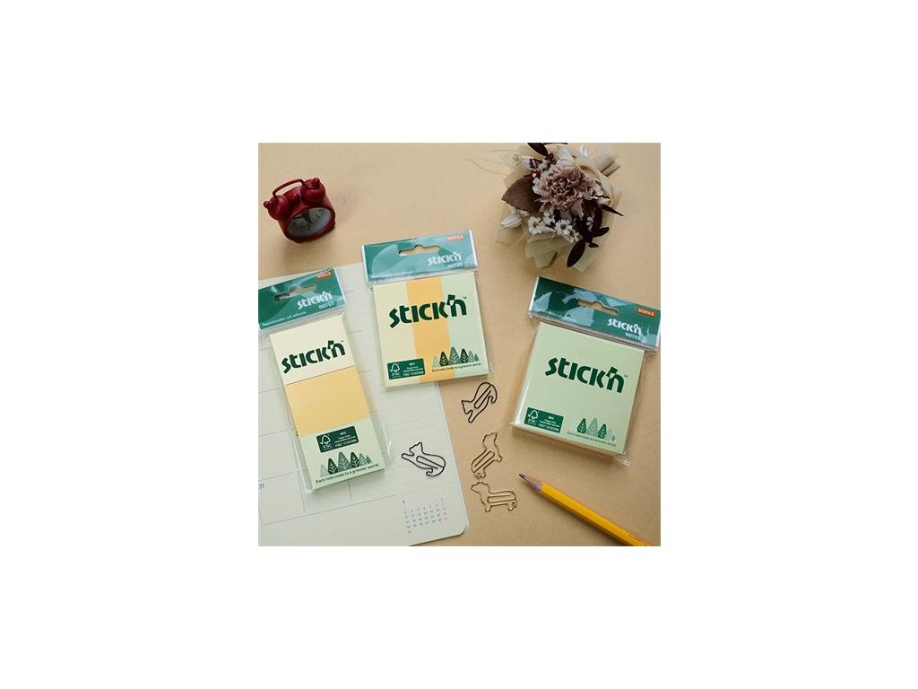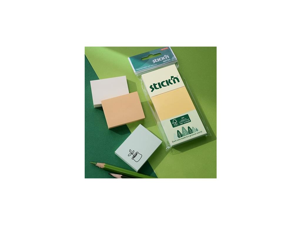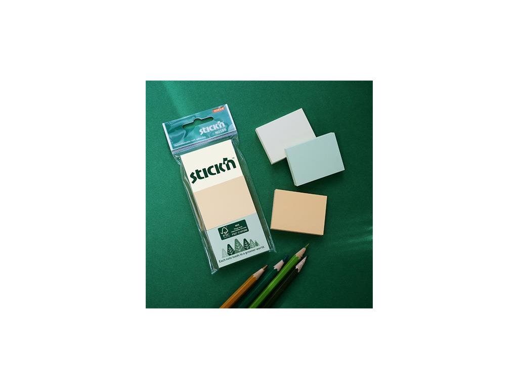 Samolepiaci bloček, 38x51 mm, 3x100 listov, STICK N, pastelové farby