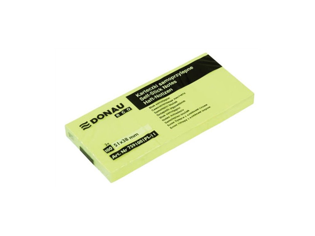 Samolepiaci bloček, 38x51mm, 3x100 listov, DONAU "ECO", žltý