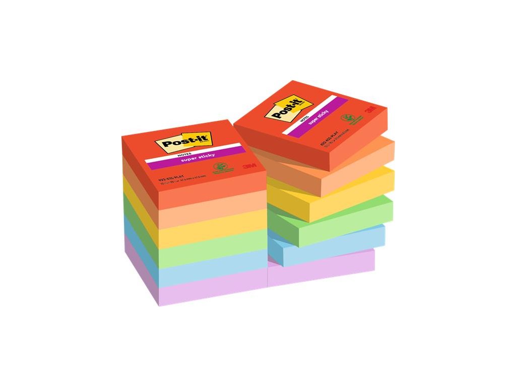 Oproti klasickým samolepiacim bločkom Post-it® poskytuje Post-it® Super Sticky 2x silnejšiu priľnavosť. dokonalé lepenie na zvislé povrchy vhravých a živých farbách s certifikátom PEFC lepidlo z obnoviteľných zdrojov, 60% rastlinného pôvoduDodatočné parametre