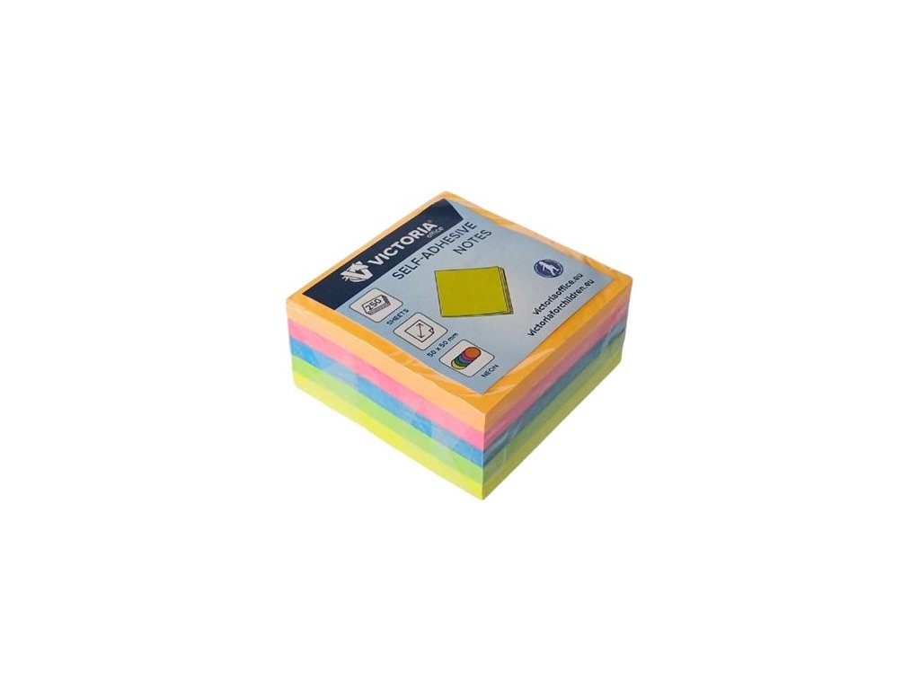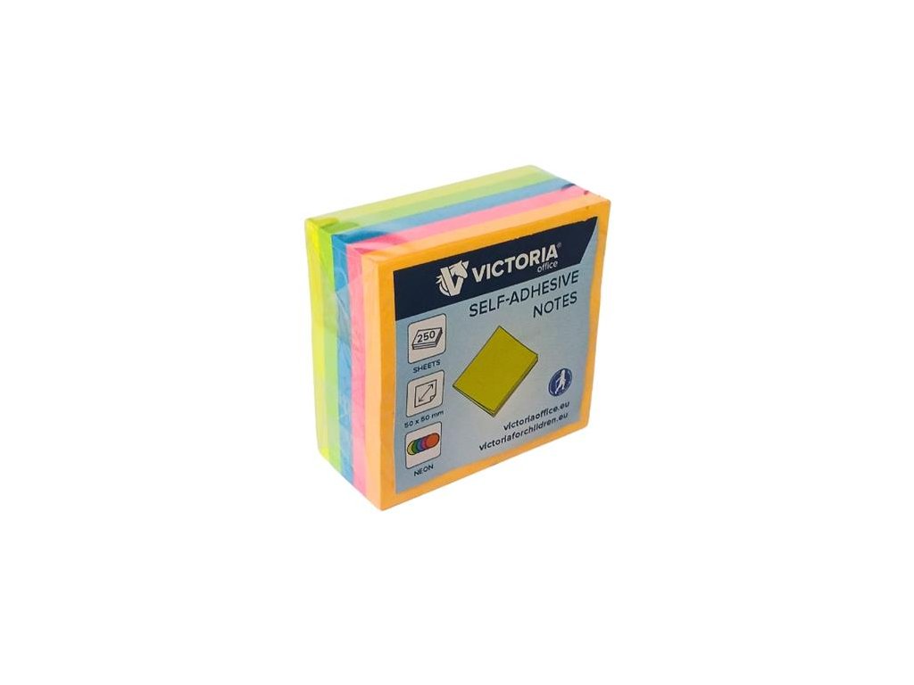 Samolepiaci bloček, 50x50 mm, 250 listov, VICTORIA OFFICE, neónové farby