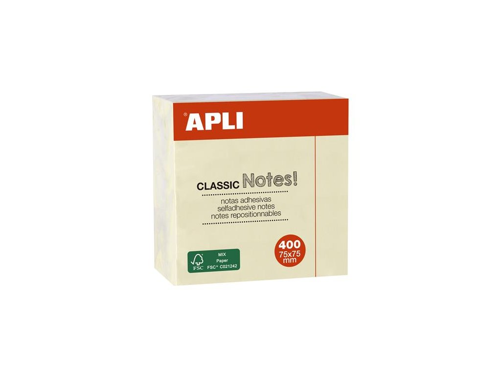 Samolepiaci bloček, 75x75 mm, 400 listov, APLI, žltý