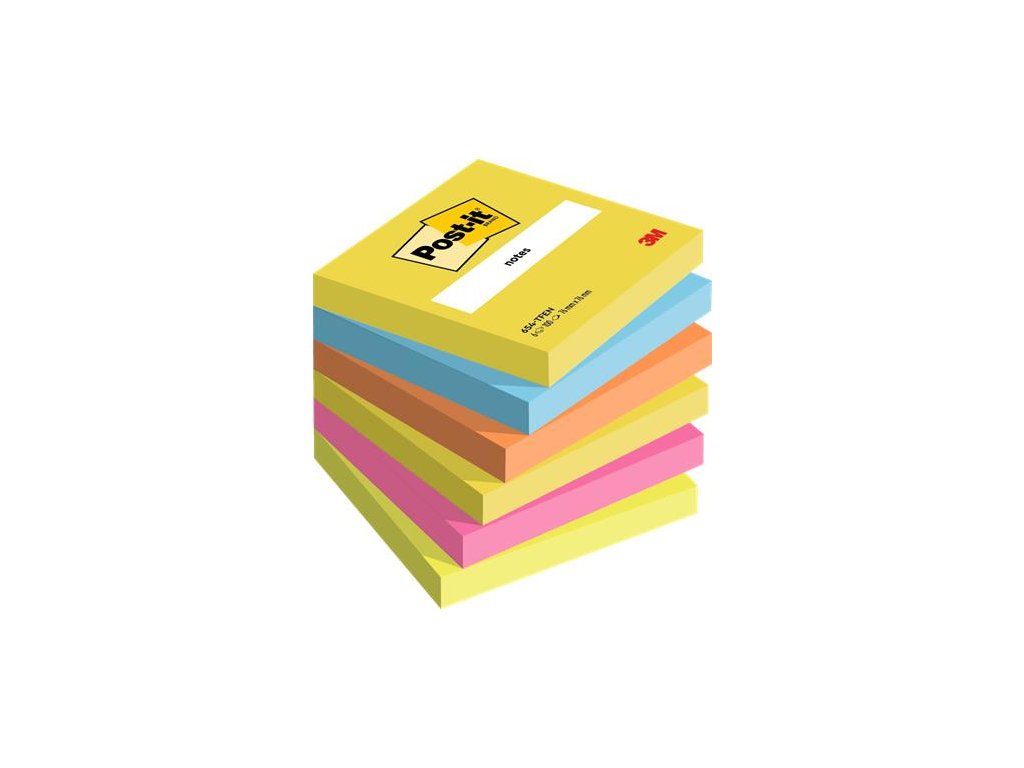 Samolepiaci bloček, 76x76 mm, 6x100 listov, 3M POSTIT, energické farby