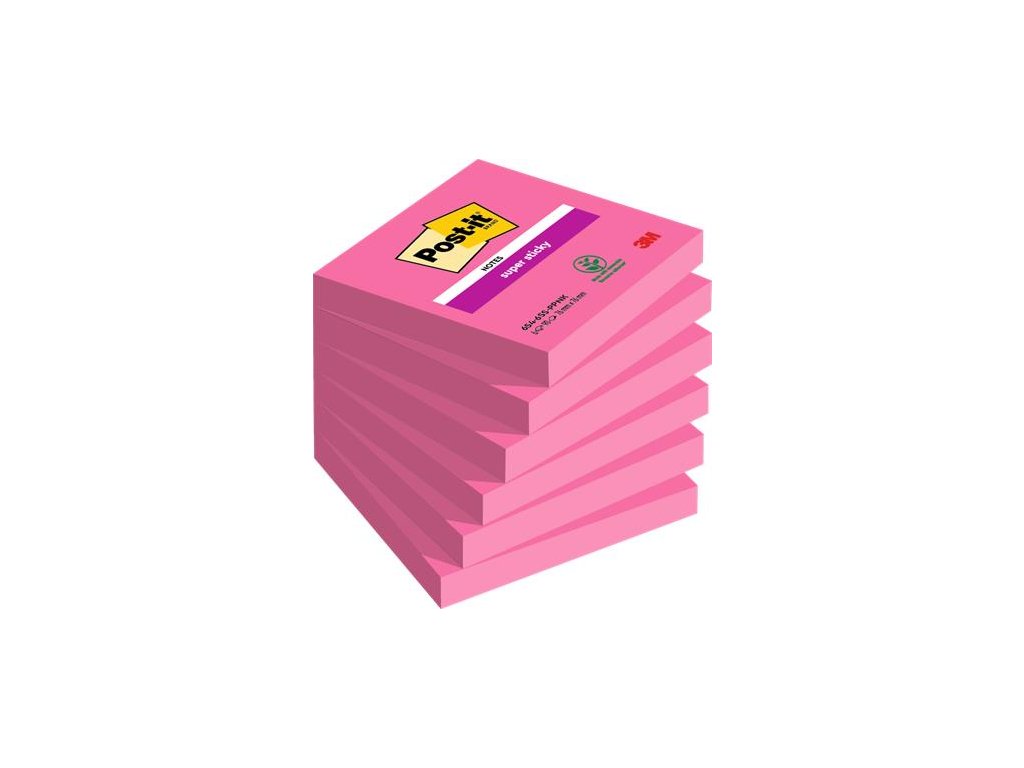 Samolepiaci bloček, 76x76 mm, 6x90 listov, 3M POSTIT "Super Sticky", ružová