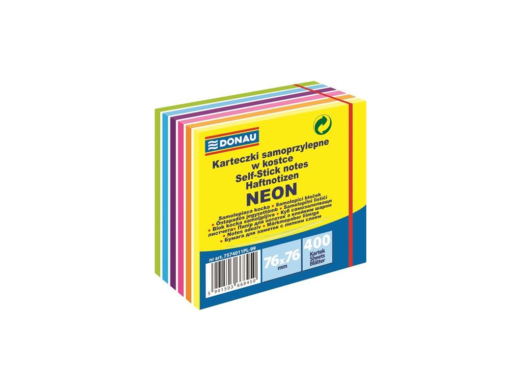 Samolepiaci bloček, 76x76mm, 400 listov, DONAU, biele a neónové farby