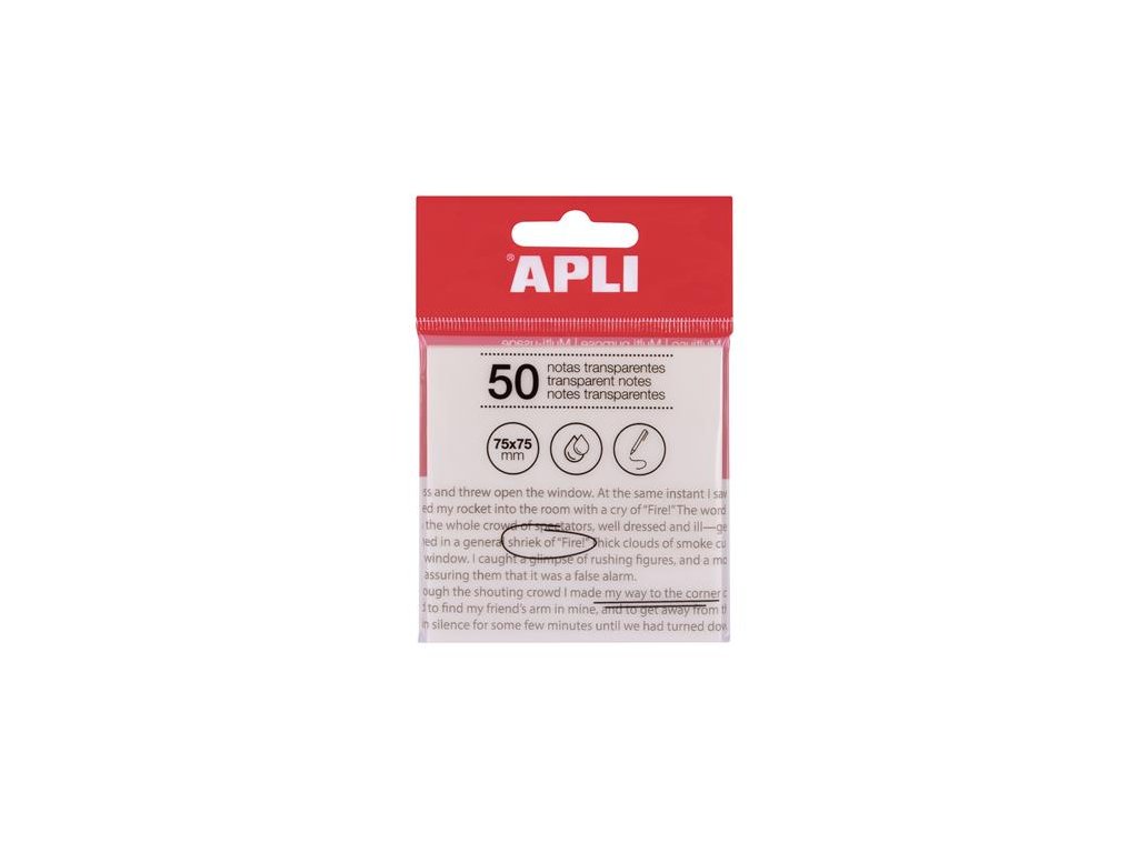 Samolepiaci bloček, priehľadný, vodeodolný, 75x75 mm, 50 listov, APLI, číra