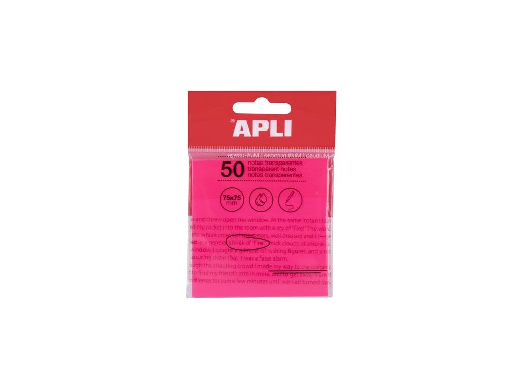 Samolepiaci bloček, priehľadný, vodeodolný, 75x75 mm, 50 listov, APLI, ružová