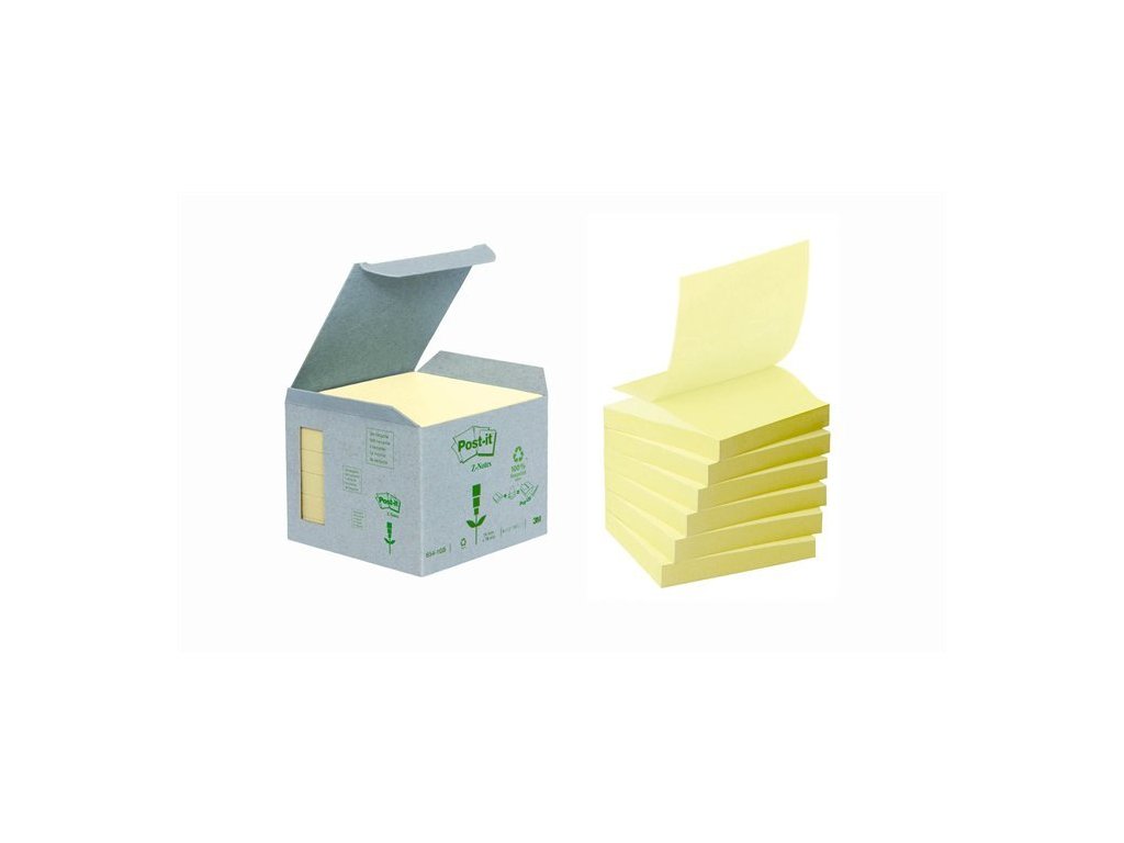 Samolepiaci bloček, "Z", 76x76 mm, 6x100 listov, ekologický, 3M POSTIT, žltý