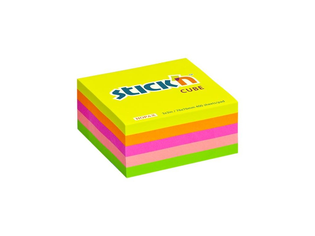 Samolepiaci blok, 76x76mm, 400 listov, STICK N, dúhové neónové farby