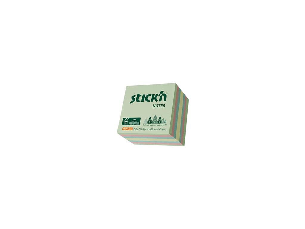 Samolepiaci blok, 76x76mm, 400 listov, STICK N, farby lesa, mix pastelových farieb