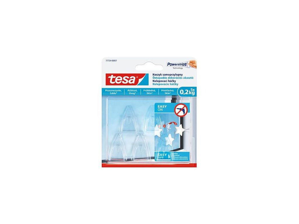Samolepiaci dekoračný háčik na sklo, TESA "Powerstrips®", priehľadná