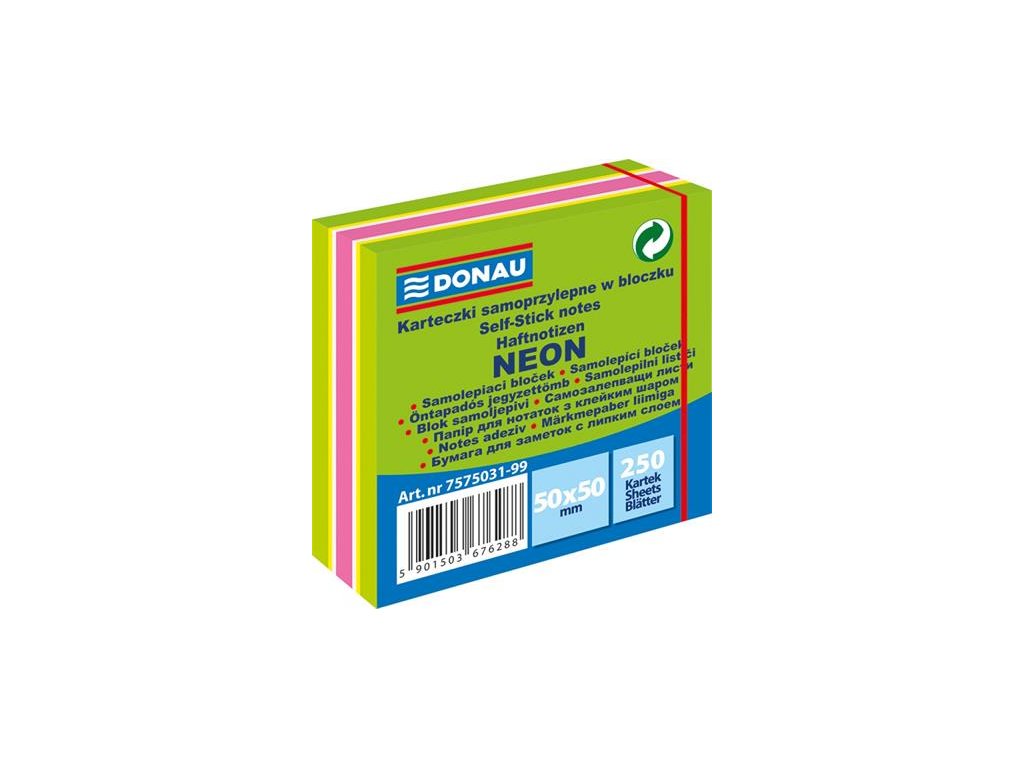 Samolepiaci poznámkový blok, 50x50 mm, 250 listov, DONAU, neónovo zelená