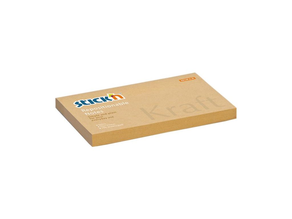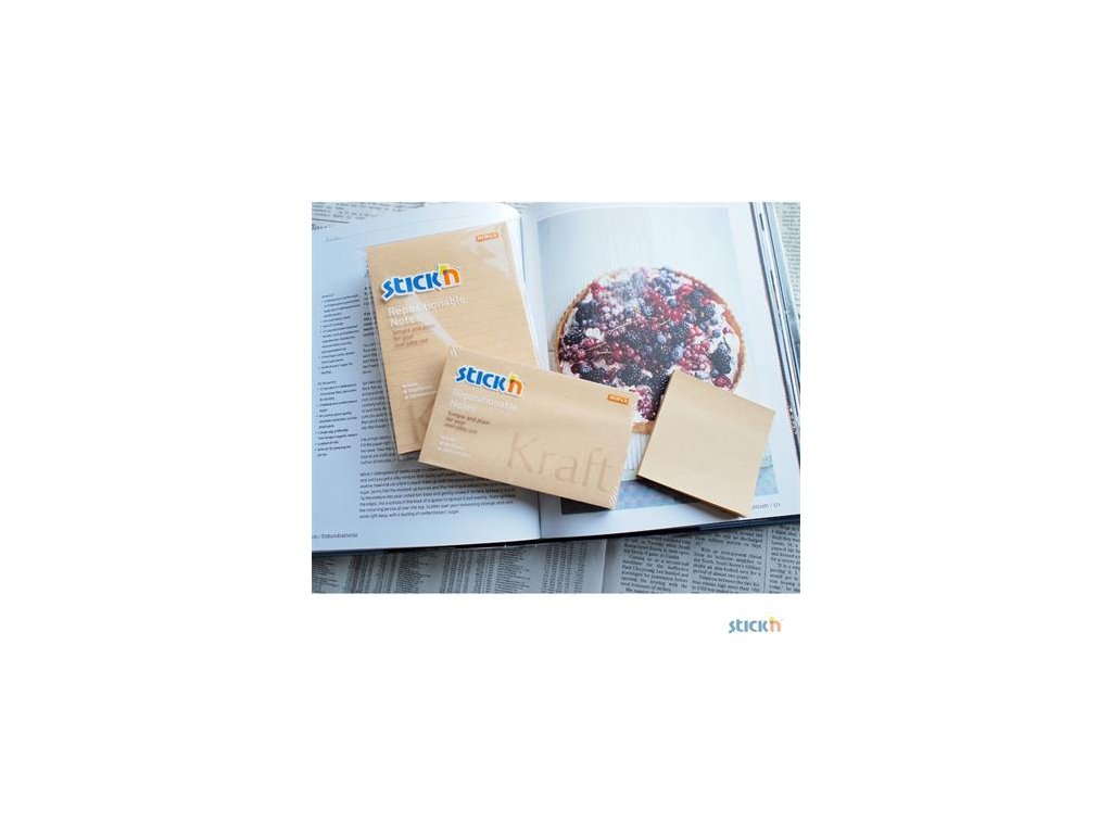 Samolepiaci poznámkový blok, 6x127 mm, 100 listov, STICK N "Kraft Notes", hnedá