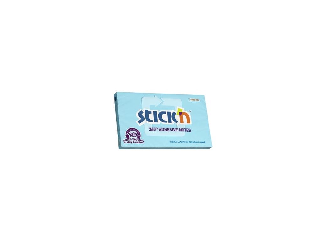 Samolepiaci poznámkový blok, 76x127 mm, 100 listov, STICK N „360°”, modrá
