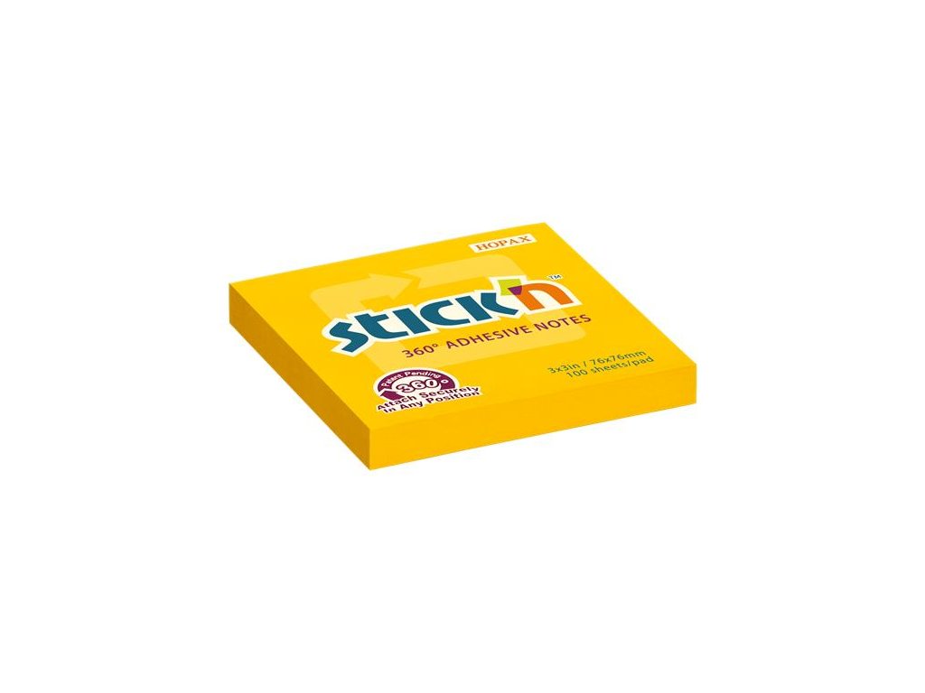 Samolepiaci poznámkový blok, 76x76 mm, 100 listov, STICK N „360°, oranžová