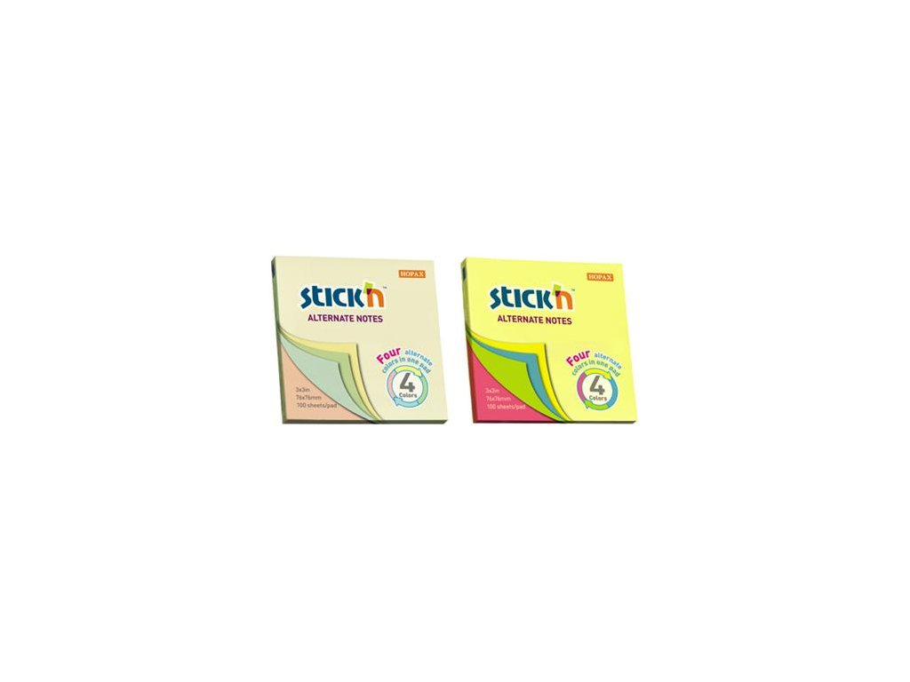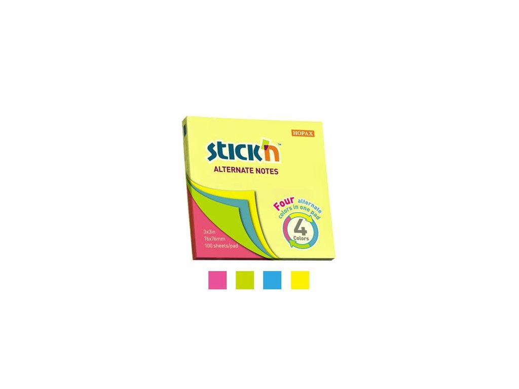 Samolepiaci poznámkový blok STICK'N - 4 druhy neónových farieb/blok - 100 listov/blokDodatočné parametre