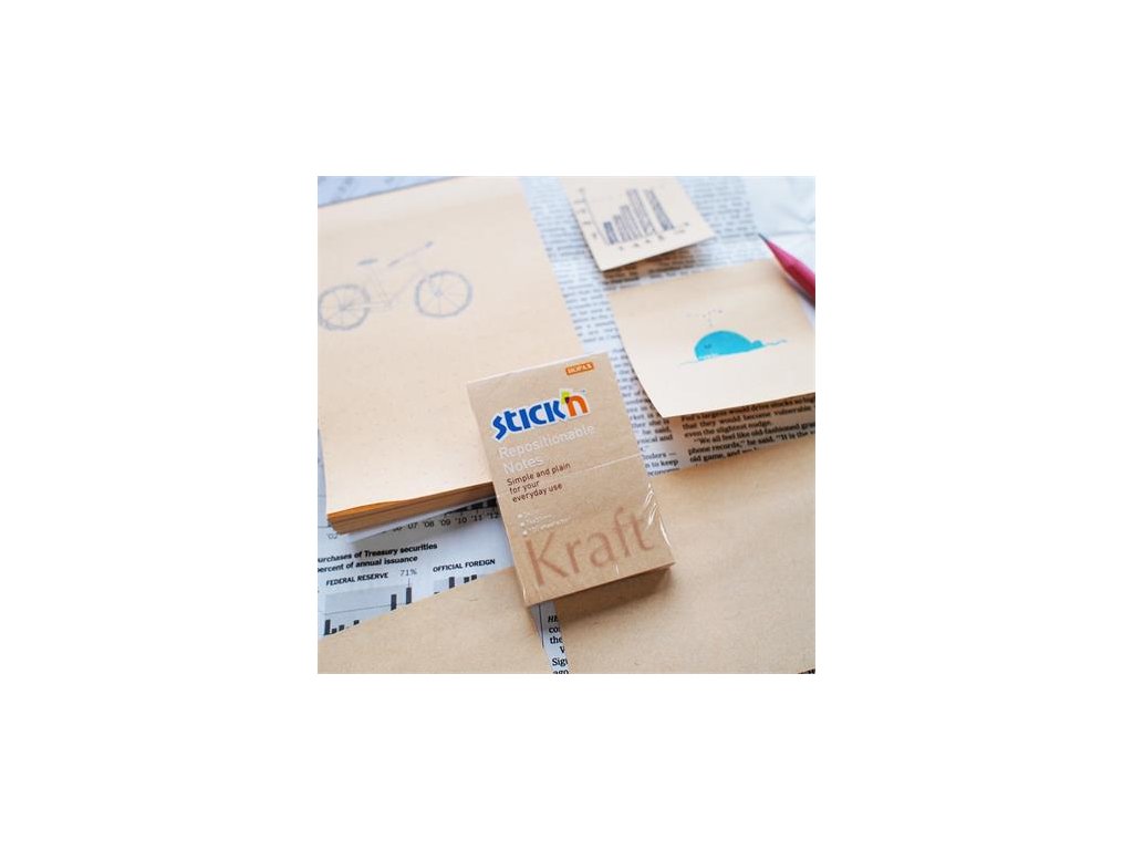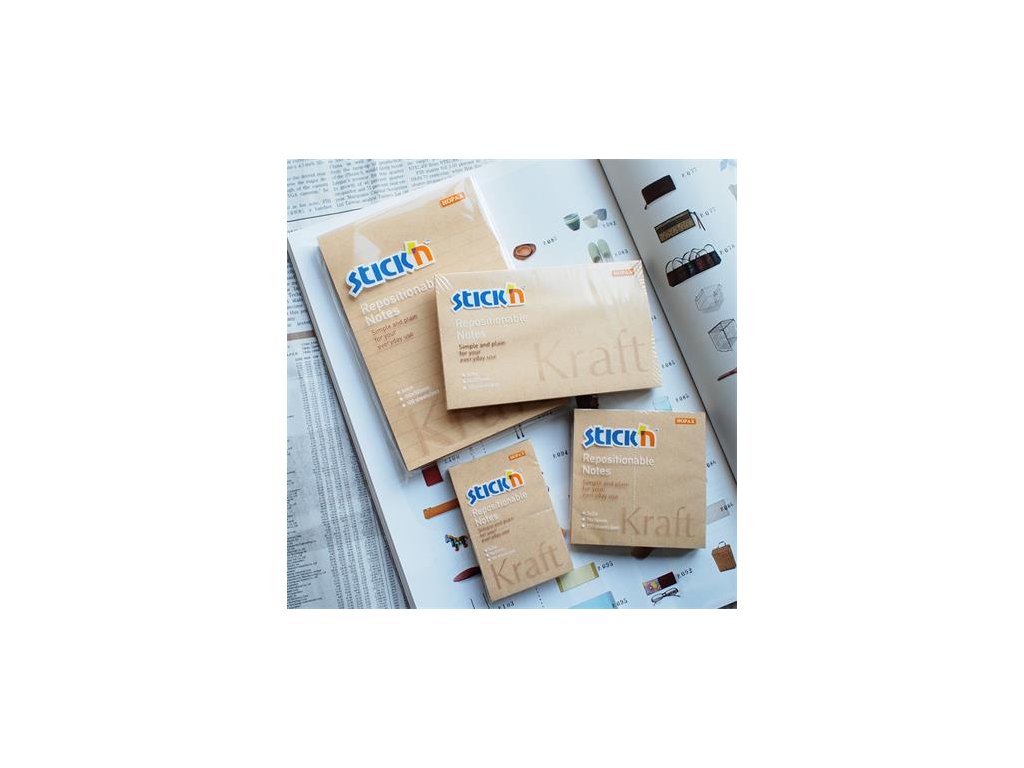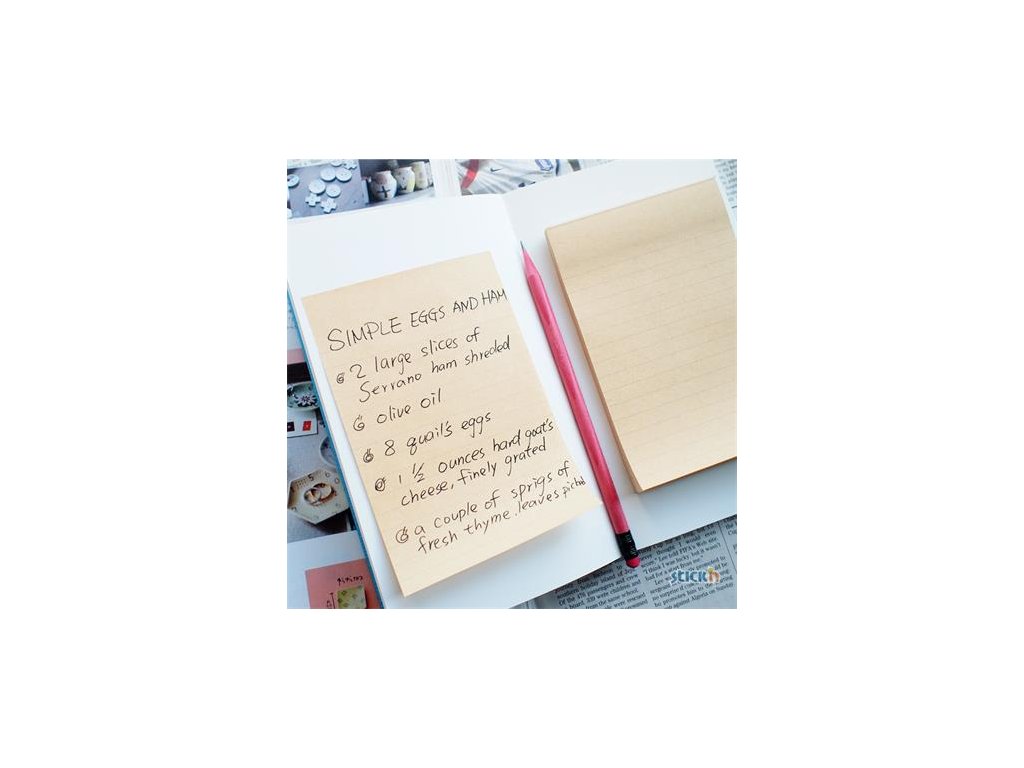 Samolepiaci poznámkový blok, linajkový, 150x101 mm, 100 listov, STICK N "Kraft Notes"