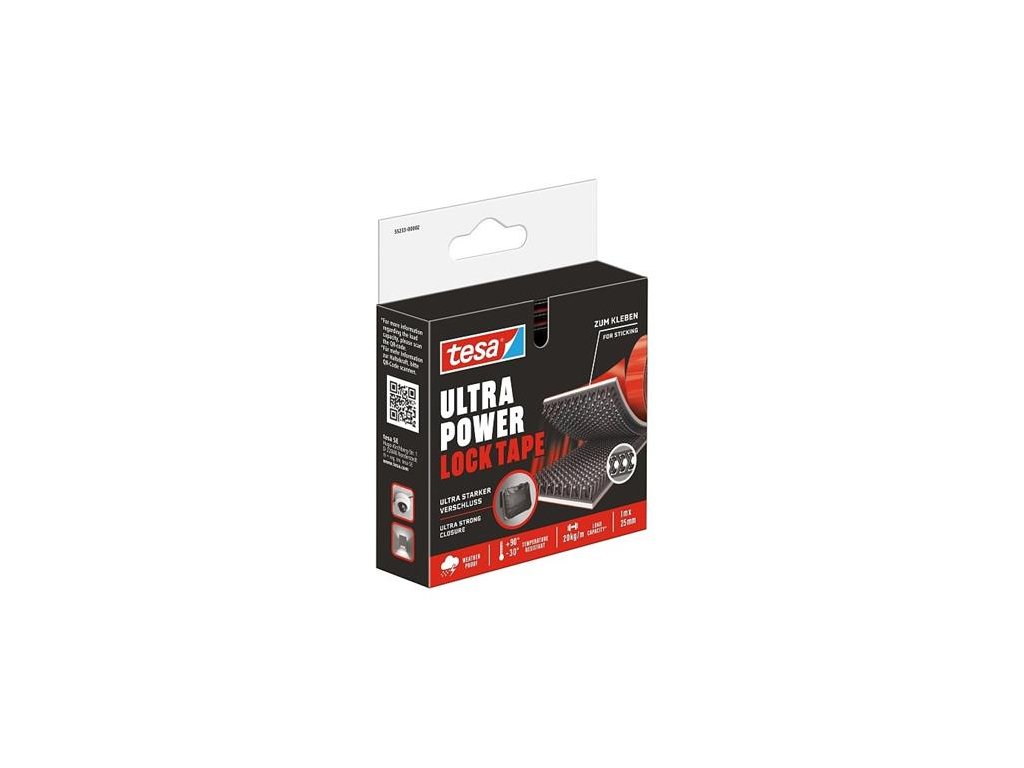 Páska tesa® Ultra Power Lock Tape je robustná alternatíva k štandardným páskam so suchým zipsom. Vďaka výnimočne silnému lepidlu ide o najspoľahlivejšiu pásku so suchým zipsom, ktorú ponúka spoločnosť tesa® – na trvalé aj dočasné upevnenie v interiéri aj exteriéri. -všestranná: Táto výkonná páska so suchým zipsom je vhodná na širokú škálu úloh v interiéri aj exteriéri -silná priľnavosť: Páska so suchým zipsom odoláva zaťaženiu až do 20 kg/m-unikátny systém háčikov suchého zipsu: Je to najsilnejšia páska so suchým zipsom v sortimente tesa® -odolná: Odolná voči UV žiareniu, vplyvom počasia a výkyvom teplôt od –30 do +90 °C -praktická: Pruhy so suchým zipsom vydávajú zvuk cvaknutia, ktorý signalizuje bezpečné pripojenie -flexibilná: Páska zostáva bezpečne na mieste, aj keď je aplikovaná na strop -opakovane použiteľná: Upevnenie na suchý zips sa dá otvárať a zatvárať podľa potreby