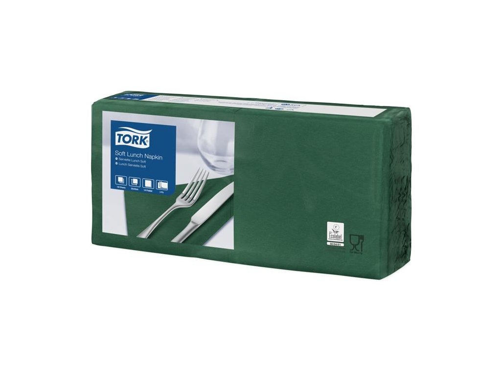 Servítky, 1/4 ohyb, 3-vrstvové, 32,5x32,8 cm, Advanced, TORK "Soft Lunch", tmavozelená