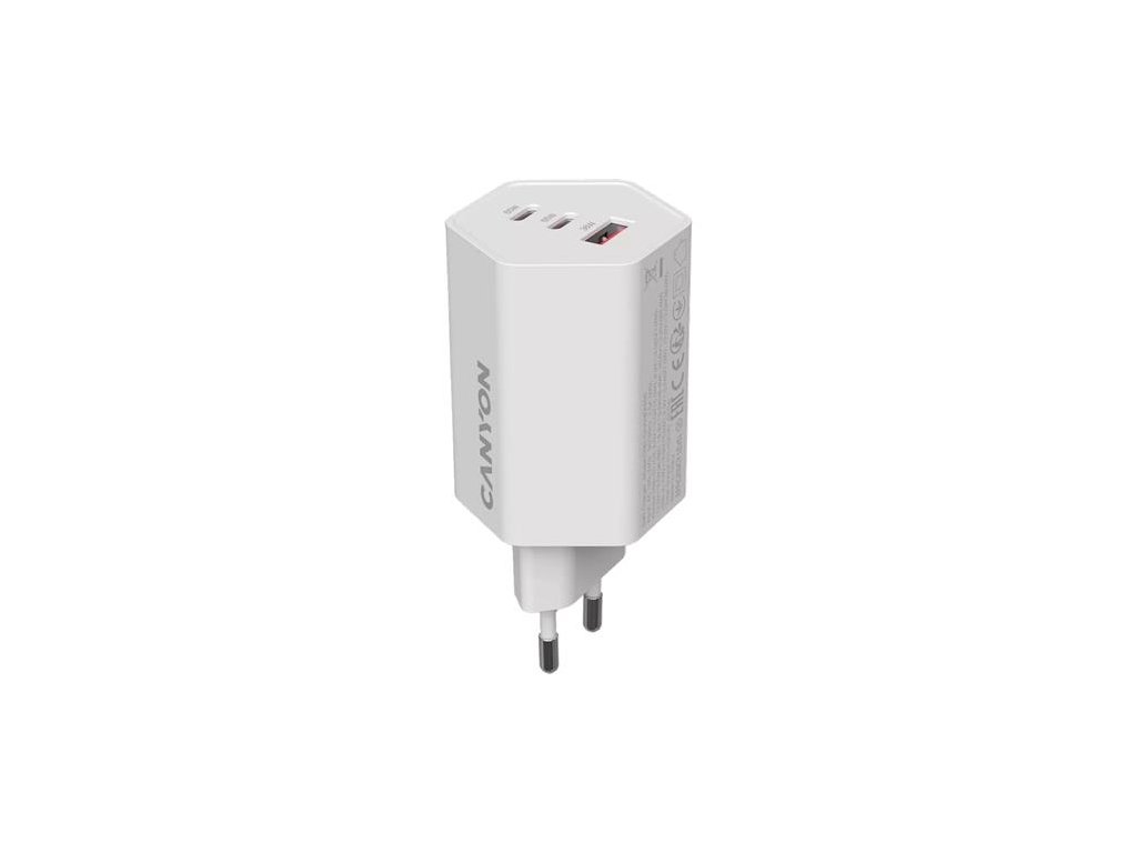 Sieťová nabíjačka, 1×USB-A, 2×USB-C, 65 W, CANYON „Hexagon 65“, biela