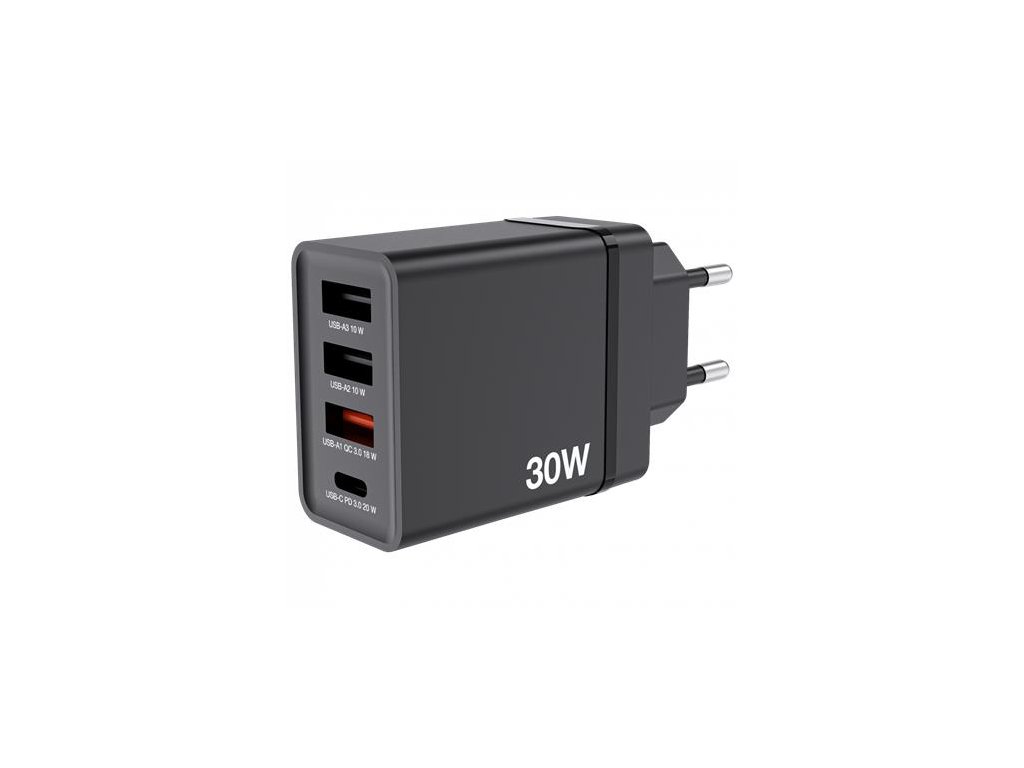 30W USB nástenná nabíjačka Verbatim kombinuje 4 porty v tenkom dizajne s EÚ zástrčkou. -podporuje súčasné nabíjanie až 4 zariadení s maximálnym celkovým výkonom 30 W -1 x USB-C® PD 3.0 až 20 W -1 x USB-A QC 3.0 až 18 W -2 x USB-A až 10 W - vyrobené z kvalitných nehorľavých materiálov -nadprúdová ochrana -prepäťová ochrana -ochrana proti skratu -ochrana proti prehriatiu -materiál: plast Teleso: PC + ABS + Ohňovzdorný materiál -rozmery: 91,2 x 45,7 x 27,5 mm ( Š x V x H) - hmotnosť: 66 g - bezplastové balenieDodatočné parametre