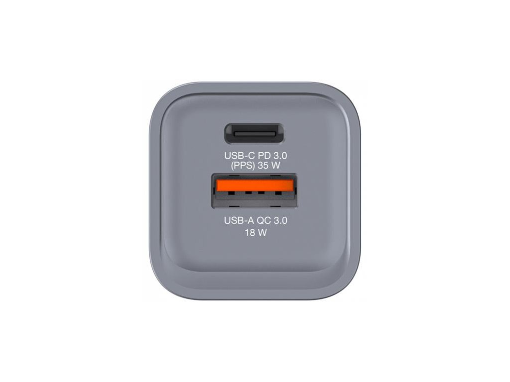 Podporuje súčasné nabíjanie až 2 zariadení (celkový výkon max. 35 W) v tenkom dizajne veľkosti dlane. So svojimi skladacími americkými stopkami a vymeniteľnými zástrčkami pre EÚ a Spojené kráľovstvo je dokonalým spoločníkom na cesty. -Galium Nitride (GaN) technológia: poskytuje vysoký výkon, rýchle a efektívne nabíjanie a produkuje menej tepla -1 x USB-C® PD 3.0 až 35 W -1 x USB-A QC 3.0 až 18 W - super rýchle nabíjanie s USB Power Delivery 3.0, PPS a Quick Charge 3.0 - technológia programovateľného napájania (PPS) poskytuje správne množstvo energie pre ideálne nabíjanie - vyrobené z kvalitných materiálov odolných voči ohňu - ochrana proti nadprúdu - ochrana proti prepätiu - ochrana proti skratu obvod - ochrana proti prehriatiu - materiál: Plast Plášť: PC Ohňovzdorný materiál - rozmery: 49 x 32 x 31 mm (Š x V x H) - hmotnosť: 56 g - balenie bez plastov - obsah balenia: nabíjačka GaN EU adaptér UK adaptér Sprievodca rýchlym spustenímDodatočné parametre