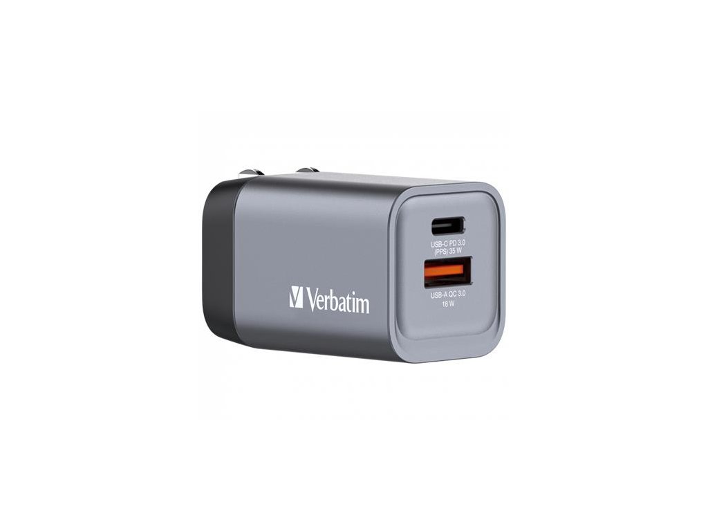 Sieťová nabíjačka, 1xUSB-C PD (35W), USB-A QC 3.0, EU/UK/US, GaN, VERBATIM