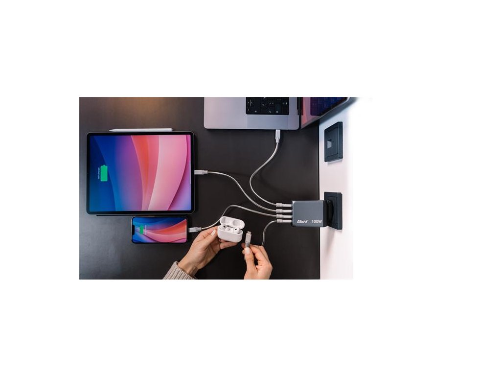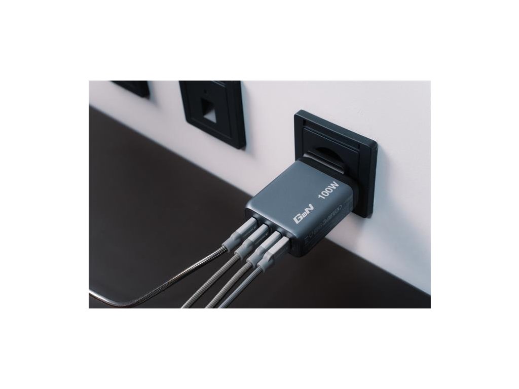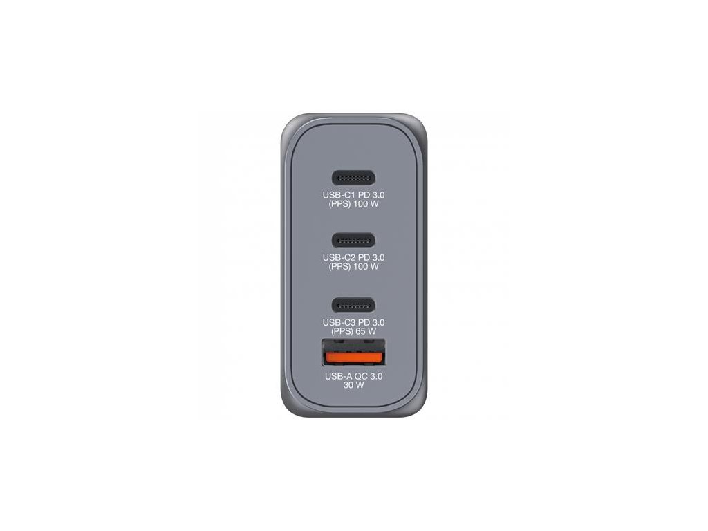 Podporuje súčasné nabíjanie až 4 zariadení (s maximálnym výkonom 100 W). So svojimi skladacími americkými stopkami a vymeniteľnými zástrčkami pre EÚ a Spojené kráľovstvo je dokonalým spoločníkom na cesty. -Gallium Nitride (GaN) technológia: poskytuje vysoký výkon, rýchle a efektívne nabíjanie a produkuje menej tepla -2 x USB-C® PD 3.0 až 100 W -1 x USB-C® PD 3.0 až 65 W -1 x USB -A QC 3.0 až 30 W - super-rýchle nabíjanie pomocou USB Power Delivery 3.0, PPS a Quick Charge 3.0 - technológia programovateľného napájania (PPS) poskytuje správne množstvo energie pre ideálne nabíjanie - vyrobené z vysokokvalitného plameňa- odolné materiály - nadprúdová ochrana -prepäťová ochrana -skratová ochrana -ochrana proti prehriatiu -materiál: Plast Telo: PC Ohňovzdorný materiál -rozmery: 77,5 x 61,1 x 29,3 mm (Š x V x H) -hmotnosť: 226 g -balenie bez plastov - obsah balenia: GaN nabíjačka EU adaptér UK adaptér Stručný návod na spustenieDodatočné parametre