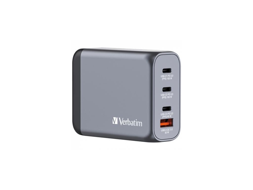 Sieťová nabíjačka, 2xUSB-C PD (100W), USB-C PD (65W), USB-A QC 3.0, EU/UK/US, GaN, VERBATIM