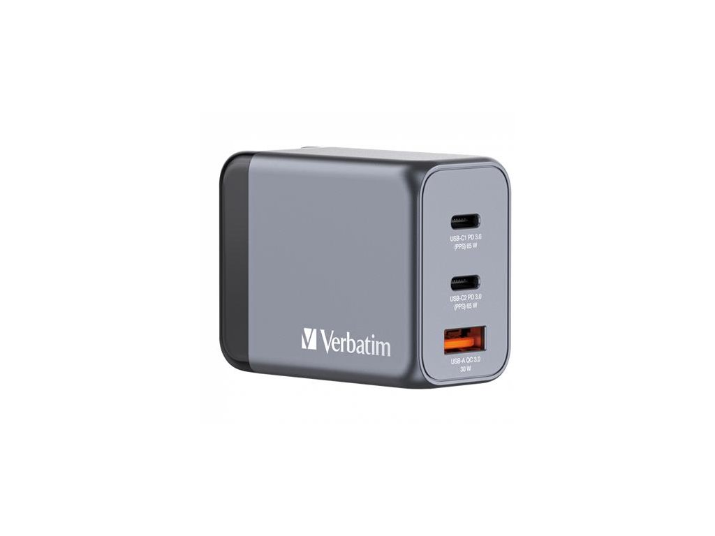 Sieťová nabíjačka, 2xUSB-C PD (65W), USB-A QC 3.0, EU/UK/US, GaN, VERBATIM