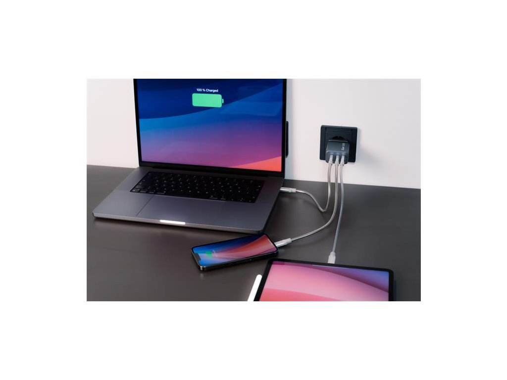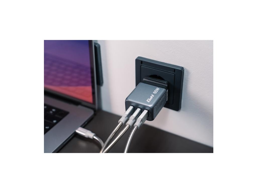 Podporuje súčasné nabíjanie až 3 zariadení (celkový výkon max. 65 W) v tenkom dizajne veľkosti dlane. So svojimi skladacími americkými stopkami a vymeniteľnými zástrčkami pre EÚ a Spojené kráľovstvo je dokonalým spoločníkom na cesty. -Gallium Nitride (GaN) technológia: poskytuje vysoký výkon, rýchle a efektívne nabíjanie a produkuje menej tepla -2 x USB-C® PD 3.0 až 65 W -1 x USB-A QC 3.0 až 30 W - super rýchle nabíjanie s USB Power Delivery 3.0, PPS a Quick Charge 3.0 - technológia programovateľného napájania (PPS) poskytuje správne množstvo energie pre ideálne nabíjanie - vyrobené z kvalitných materiálov odolných voči ohňu - ochrana proti nadprúdu - ochrana proti prepätiu - ochrana proti skratu obvod - ochrana proti prehriatiu - materiál: Plast Plášť: PC Ohňovzdorný materiál - rozmery: 58,7 x 47,3 x 29,4 mm (Š x V x H) - hmotnosť: 105 g - bezplastový obal - obsah balenia: nabíjačka GaN EU adaptér UK adaptér Stručný sprievodca umiestnenímDodatočné parametre