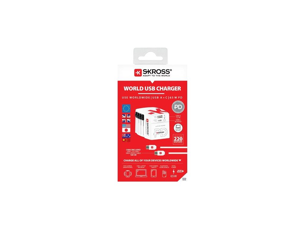 Sieťová nabíjačka pre cestovateľov, 1× USB-A, 1× USB-C PD, 65 W, USB-C kábel, SKROSS