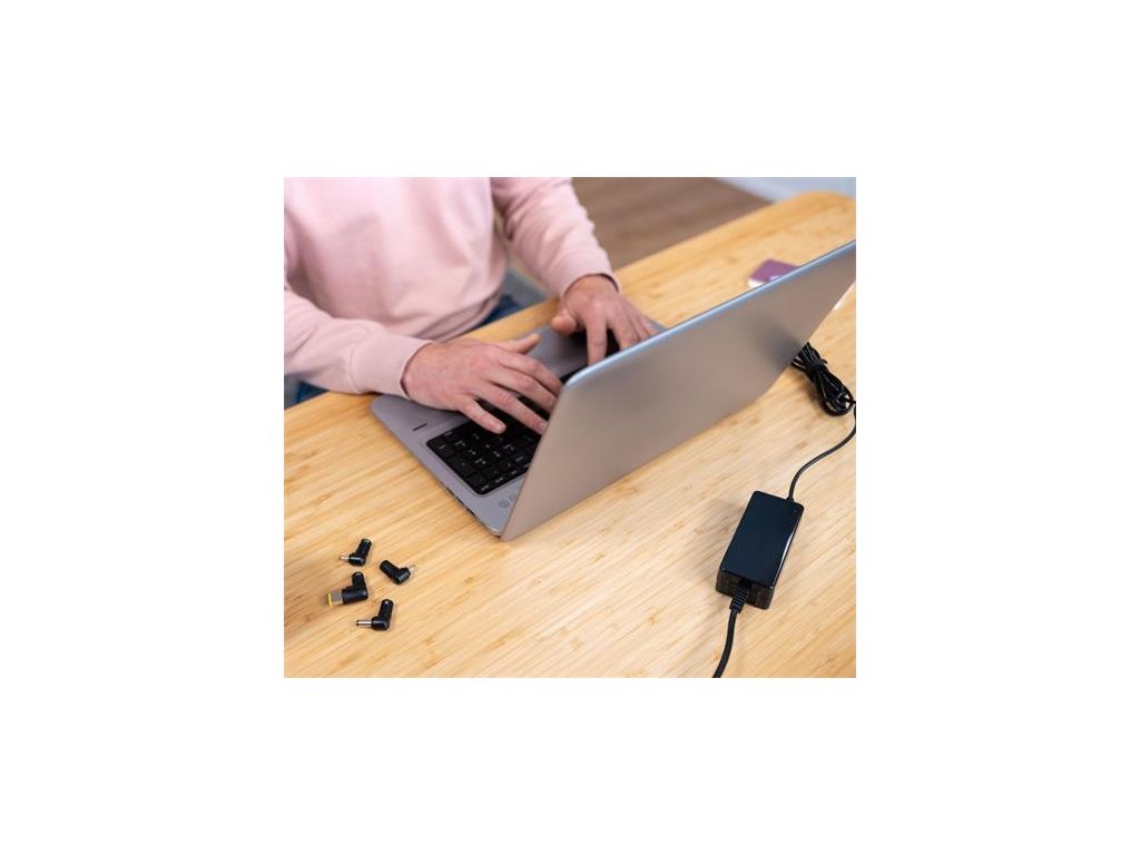 Univerzálna 45W nabíjačka na notebook, ktorú je možné vďaka vymeniteľným konektorom použiť prakticky pre každý notebook.- 6 rôznych spojovacích hláv