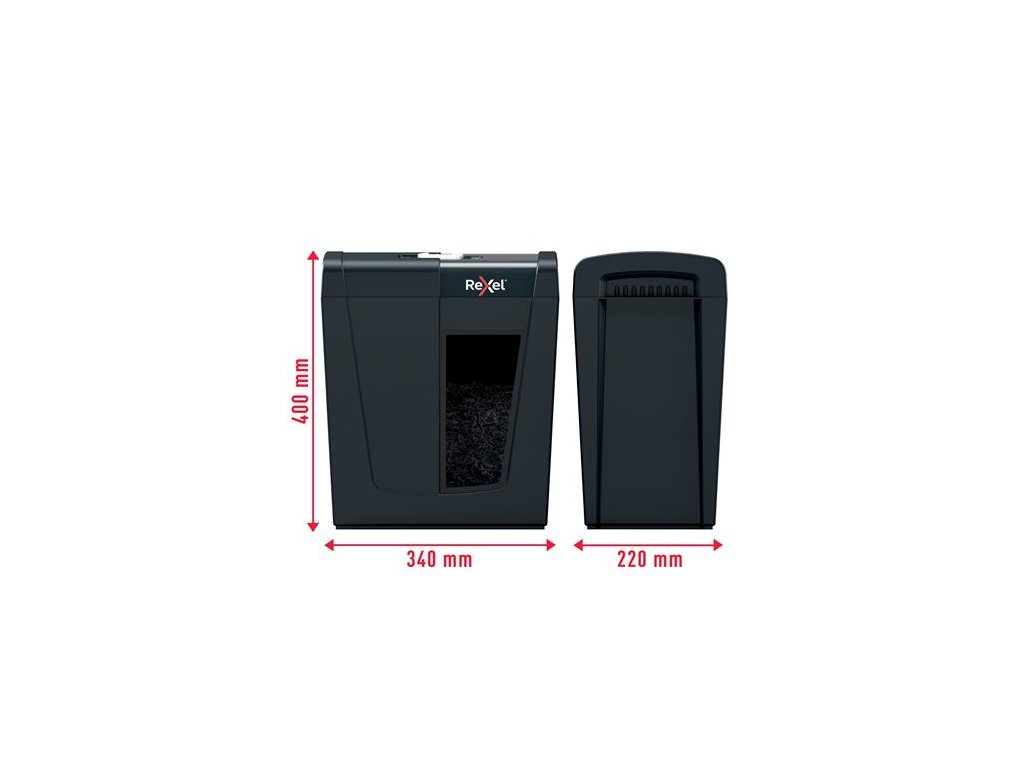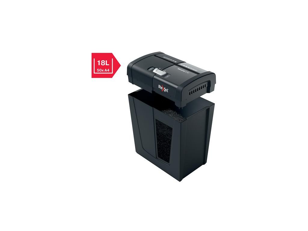 skartovací stroj, na domáce použitie ideálne na zničenie osobných alebo kacelárskych dôverných dokumentov skartuje na konfety úroveň bezpečnosti: P-4 DIN kapacita listov: 10 ks A4 listov (80 g/m2 kapacita koša: 18 litrov (150 ks A4 listov) skartuje sponky aj spinky hlučnosť: <70dB doba aktivity: 3 minúty 2 ročná záruka na zariadenie 2 ročná záruka na sekáč Značka: REXEL Výrobca: Esselte Kft. Adresa: 1139 Budapest, Lomb u. 37-39. A ép. II. 8., Hungary Web: https://www.accobrands.com/brands/ Email: hungarymarketing@acco.comDodatočné parametre