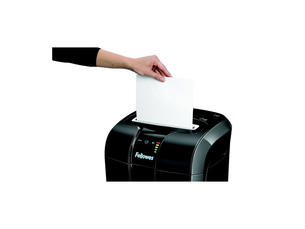 - do malej kancelárie alebo na domáce využitie, pre 1-3 používateľov - kapacita: 11 listov (80 g) - rez: 4 x 38 mm konfety - bezpečnosť: DIN P-4 - šírka dávkovača papiera: 230 mm - priemerná rýchlosť: 3 m/minúta - kapacita koša: 23 l - 10 minútový skartovací cyklus pri maximálnej záťaži (10 min. prevádzka/40 min. prestávka) - skartuje: spinky, sponky, kreditné karty, CD/DVD - "100% Jam Proof": nielenže zabráni zaseknutiu papiera, ale vďaka extrémnej sile motora zdolá aj najproblematickejšie prípady - "SafeSense" bezpečnostná funkcia, pri ktorej stroj okamžite zastaví akonáhle sa ruka dotkne dávkovacieho otvoru alebo dostane príliš blízko k nemu - "Energy Savings System™" je schopný minimalizovať spotrebu energie aj počas prevádzky. Stroj meria množstvo papiera na skartovanie pomocou senzorov a používa vždy len toľko energie, koľko je nevyhnutne potrebné na skartovanie dávkovaného papiera, po používaní okamžite prepne do spiaceho režimu - hluk: 56-62 dB - rozmery (V x Š x H): 532 x 372 x 274 mm - hmotnosť: 11,5 kgDodatočné parametre
