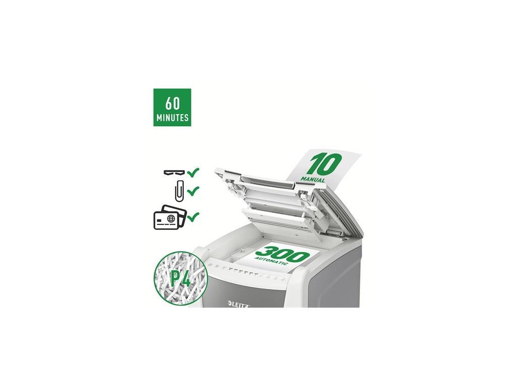 Skartovací stroj, konfety, 300 listov, LEITZ "IQ AutoFeed Office 300 P4 Pro"
