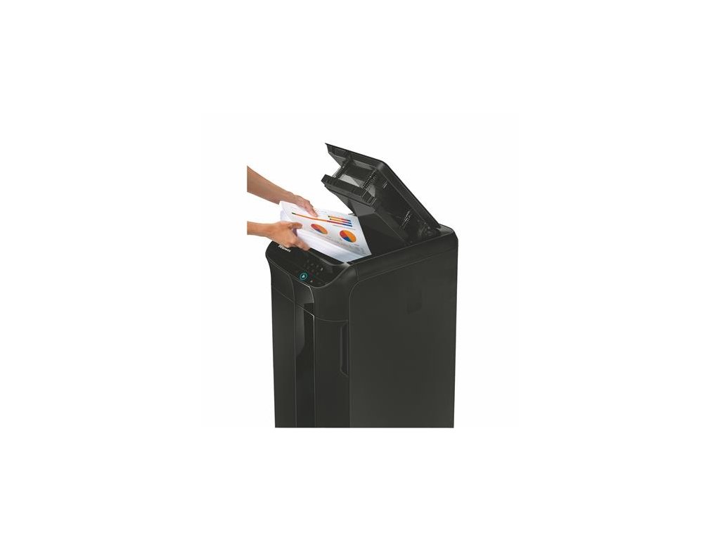 - do malej až strednej kancelárie, pre 3-5 používateľov - kapacita: 350 listov (80 g) - kapacita ručného dávkovača: 11 listov (80 g) - rez: 4 x 38 mm konfety - bezpečnosť: DIN P-4 - rez CD/DVD: 160 m2 konfety - bezpečnosť rezu CD/DVD: DIN 0-3 - šírka dávkovača papiera: 230 mm - priemerná rýchlosť: 3,35 m/minúta - kapacita koša: 68 l - skartuje: spinky, sponky, kreditné karty, CD/DVD - "SafeSense" bezpečnostná funkcia, pri ktorej stroj okamžite zastaví akonáhle sa ruka dotkne dávkovacieho otvoru alebo dostane príliš blízko k nemu - „100% Jam Proof”: 100% Bezporuchová technológia nielenže zabráni zaseknutiu papiera, ale vďaka extrémnej sile motora zdolá aj najproblematickejšie prípady - „Energy Saving System“ je jediný systém, ktorý je schopný minimalizovať spotrebu energie aj počas prevádzky. Stroj meria množstvo papiera na skartovanie pomocou senzorov a používa vždy len toľko energie, koľko je nevyhnutne potrebné na skartovanie dávkovaného papiera, po používaní okamžite prepne do spiaceho režimu. - „Continuous Duty Shredding”: Nepretržitá prevádzka, ktorú umožní motor s extra veľkým výkonom - „Auto Oil“: Funkciu automatického mazania môžete nájsť u niektorých strojov na rezanie konfiet, táto funkcia automaticky maže stroj, čo zvyšuje životnosť stroja a znižuje jeho hlučnosť - hluk: 60-65 dB - rozmery (V x Š x H): 813 x 390 x 578 mm - hmotnosť: 31,8 kgDodatočné parametre