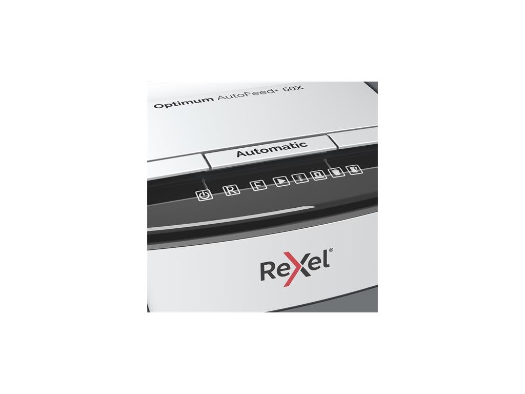 Skartovací stroj, konfety, 50 listov, REXEL, "Optimum AutoFeed+ 50X"