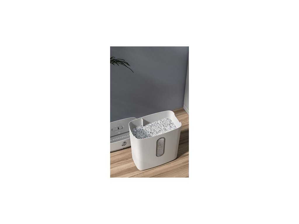 Skartovací stroj pre malú a domácu kanceláriu, pre 1-3 užívateľov. - oblasť používania: malá a domáca kancelária - úroveň bezpečnosti (papier): DIN P-4 - úroveň bezpečnosti (kreditná karta): DIN T-4 - typ rezu: papier - konfety (5x18 mm) - dávkovanie: 8 listov / 80 g papiera - šírka zásobníka na papier: 220 mm - rýchlosť skartovania: 1,8 m (metre) / min - objem zbernej nádrže na odpad: 15 litrov - skartuje: sponky, kreditné karty, spinky - nepretržitá prevádzková doba: 4 minúty - čas odpočinku: 50 minút - hlučnosť: 68 dBA - rozmery produktu, hmotnosť: 416 x 320 x 190 mm, 4,3 kg - záruka: 2 roky (zariadenie), 2 roky (rezacie nože) Značka: HP Výrobca: HP Adresa: HP REG 23010, 08028 Barcelona, Spain Web: https://www.hp.com/hu-hu/home.html Email: reg@hp.comDodatočné parametre
