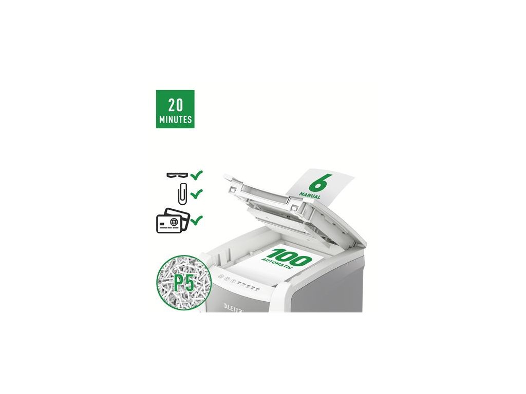 Skartovací stroj, mikrokonfety, 100 listov, LEITZ "IQ AutoFeed SmallOffice 100 P5 Pro"